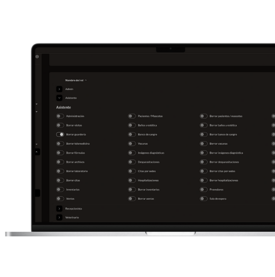 Puedes agregar usuarios según tu plan y asignar roles y permisos (veterinario, recepción, asistente, administración) para controlar qué ve o edita cada perfil. Más detalles en funcionalidades.